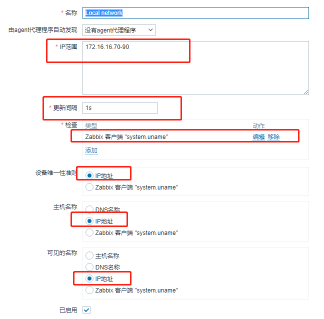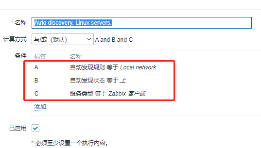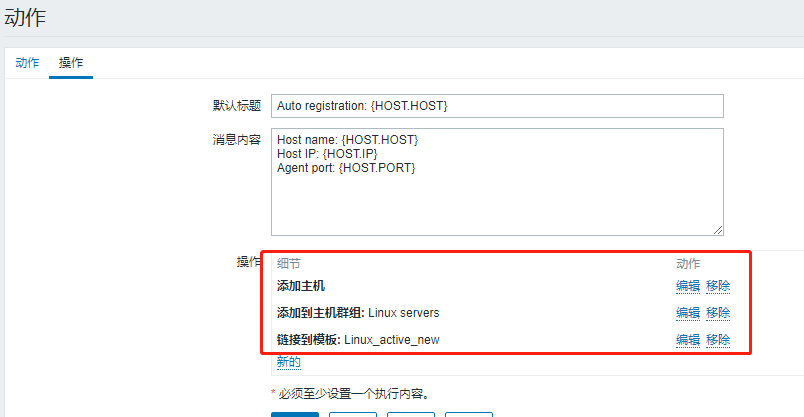 #自动网络发现 ##位置:配置--自动发现 ####配置自动发现  --- ##位置:配置--动作 ####配置自动发现后的动作  ---  ---  --- #自动注册 ##修改agent配置文件 Server=172.16.16.79 ServerActive=172.16.16.79 Hostname=test HostMetadata=Linux #重点这个 RefreshActiveChecks=60 #60秒刷新一次,默认120s --- ##位置:配置—动作  ---  ---
