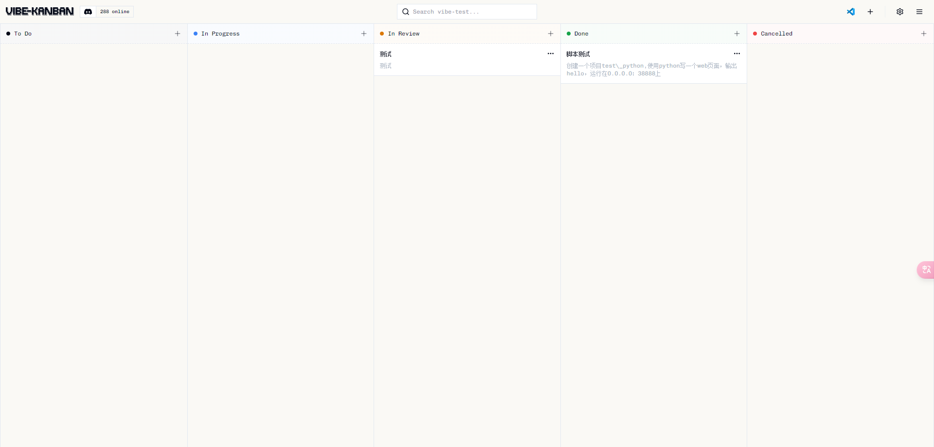 #安装cargo curl --proto '=https' --tlsv1.2 -sSf https://sh.rustup.rs | sh source $HOME/.cargo/env --- ##安装pnpm curl -fsSL https://get.pnpm.io/install.sh | sh - --- #安装依赖 cargo install cargo-watch cargo install sqlx-cli --- #启动 HOST=0.0.0.0 PORT=3005 npx vibe-kanban --- #以脚本启动 vim /opt/start-vibe-kanban.sh #!/bin/bash export HOST=0.0.0.0 export PORT=3005 npx vibe-kanban ####前台运行 bash /opt/start-vibe-kanban.sh ####后台运行 nohup /opt/start-vibe-kanban.sh &>> /opt/vibe-kanban.log & ---